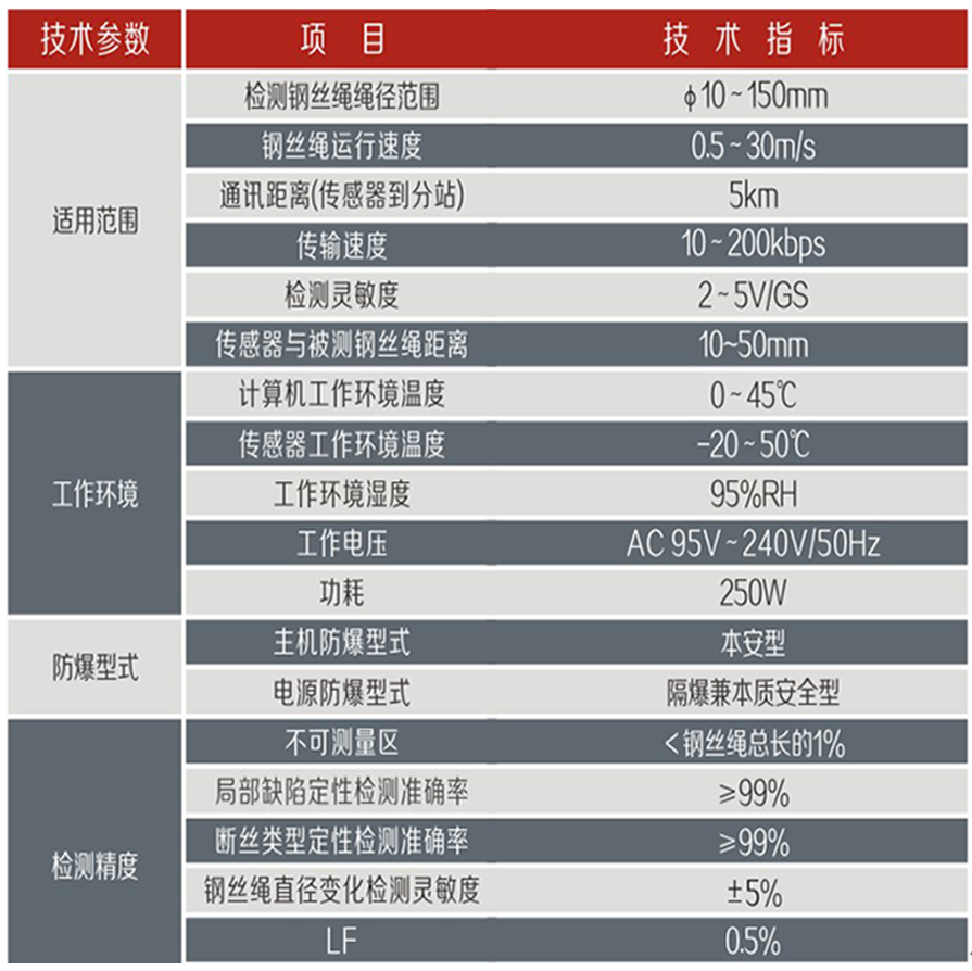 專利技術“磁平衡檢測技術”,無需深度磁化鋼絲繩,結構簡單。
