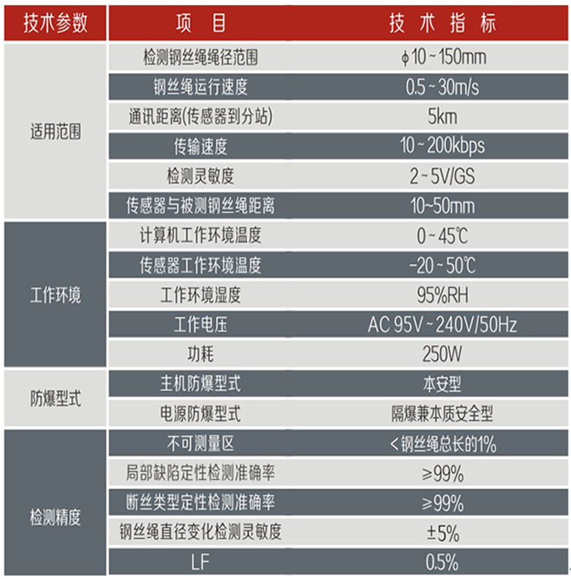 4 傳感器高靈敏度:檢測斷絲的靈敏度為鋼絲繩截面積的0.5%。