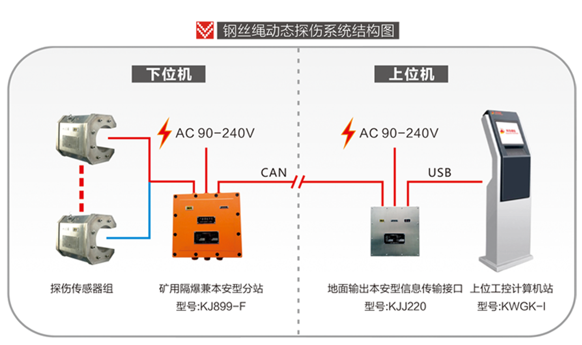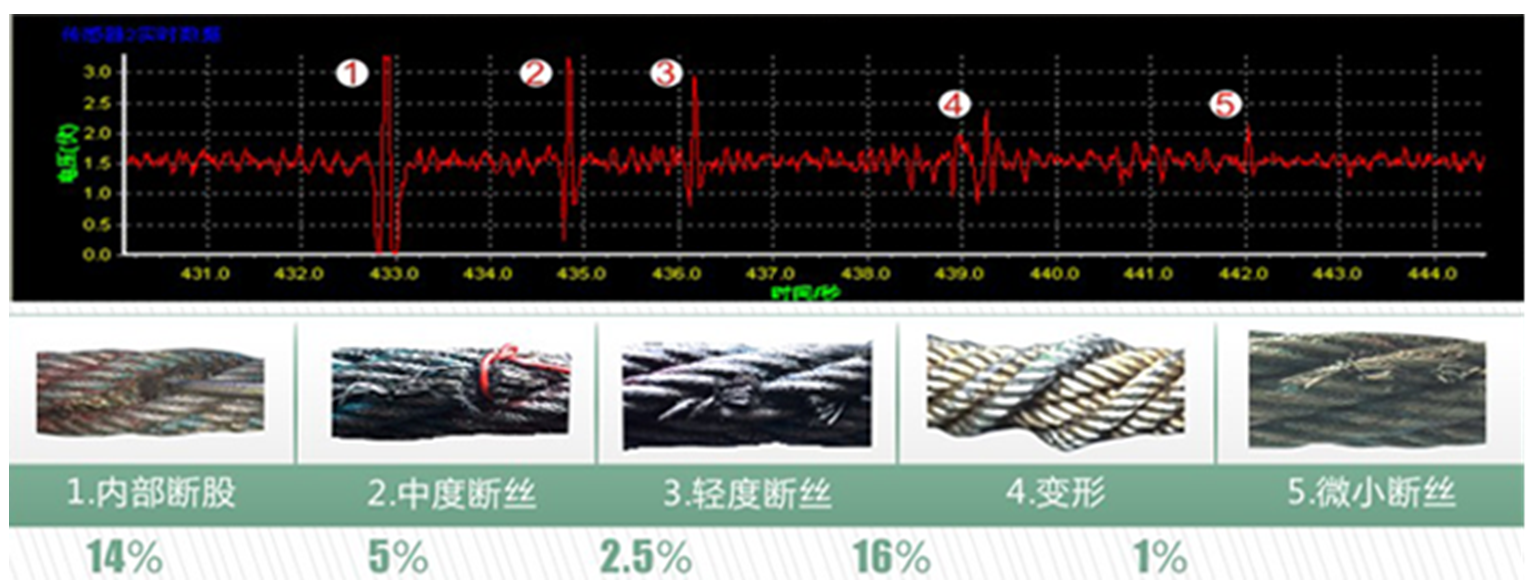 實現對鋼絲繩斷絲、變形、磨損。銹蝕、松股、跳絲等缺陷類型的在線實監控,并準確定位。