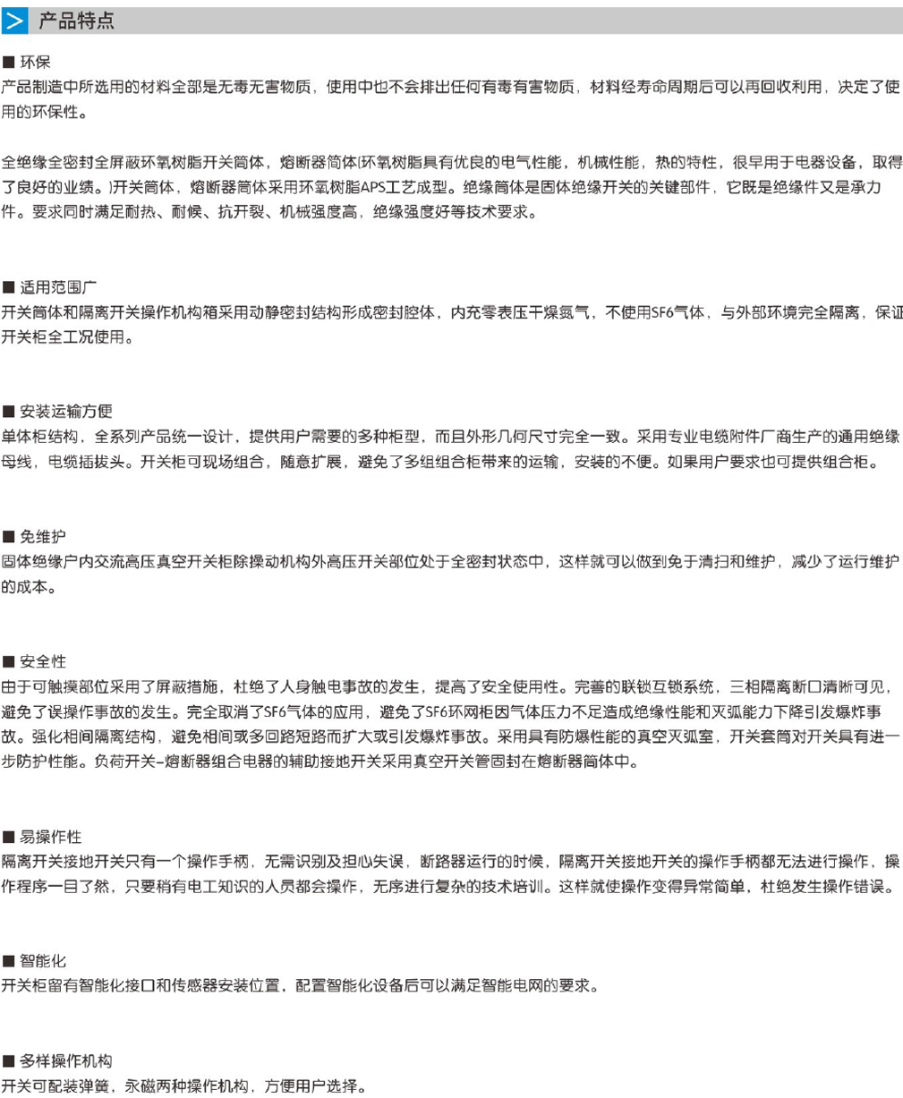 護(hù)固體絕緣真空開關(guān)設(shè)備。所有高壓帶電部分均用絕緣性能優(yōu)良的環(huán)氧樹脂材